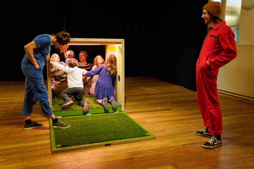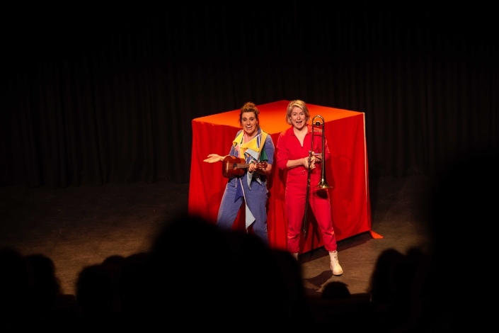 Lies Vandeburie en Anneleen Sels maken muzische voorstellingen die zowel in de theaterzaal als op locatie kunnen staan. Zo kunnen ze altijd spelen en hoeft geen kind hun sprankelende voorstellingen te missen! Voor Lies en Anneleen is het namelijk belangrijk om theater naar het kind toe te brengen en een zo divers mogelijk publiek te bereiken. Ze willen alle kinderen aanmoedigen tot muzikaliteit en verbinding in al zijn facetten.