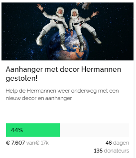 De Hermannen kregen daarna flink wat aandacht van lokale media, en social media berichten zijn massaal gedeeld. Allemaal in de hoop om de spullen nog ergens terug te vinden. Helaas zonder succes. De enige oplossing bleek om opnieuw te beginnen. Een nieuw decor laten maken en een nieuwe aanhanger aanschaffen. Daarom zijn ze een crowdfunding gestart via Voordekunst.