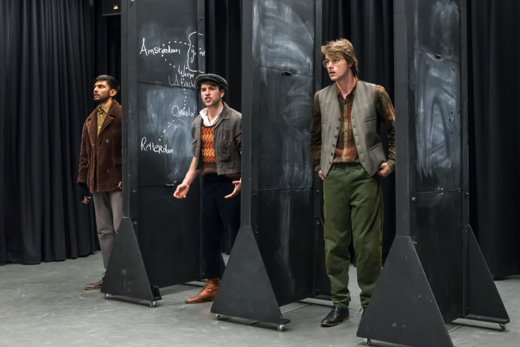 ‘De jonge, professioneel opgeleide toneelspelers van de Rotterdamse theatergroep Het Lage Licht, weten met wat oude kleding, drie zwartgeverfde panelen en een op dagboekfragmenten gebaseerde toneeltekst een wereld te creëren die tachtig jaar later nóg angst aanjaagt.’