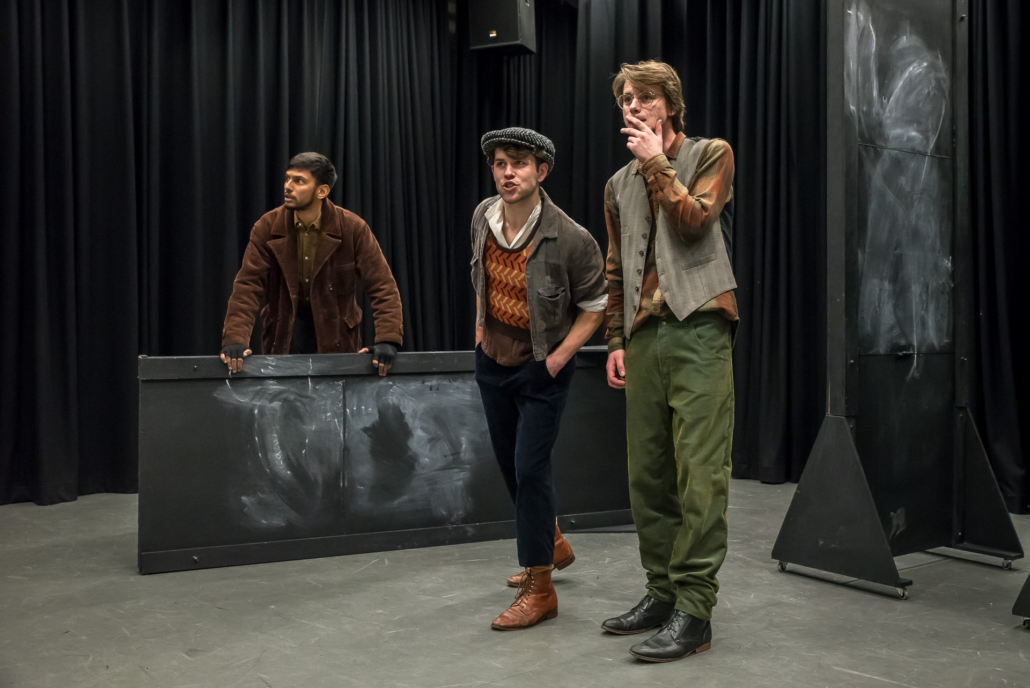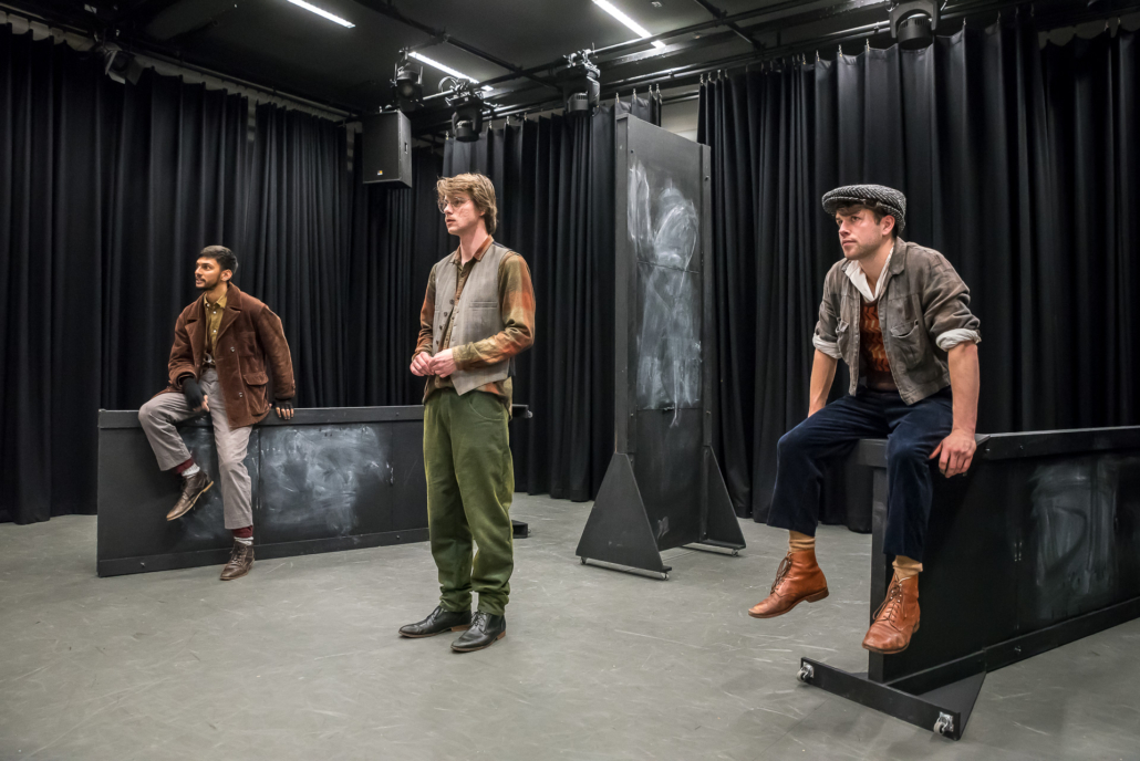 In ‘Houd Moed!’ vertellen drie jongemannen hoe ze zijn opgepakt en wat ze hebben meegemaakt in de Duitse werkkampen. De voorstelling is gebaseerd op verhalen van overlevenden, dagboeken en brieven.