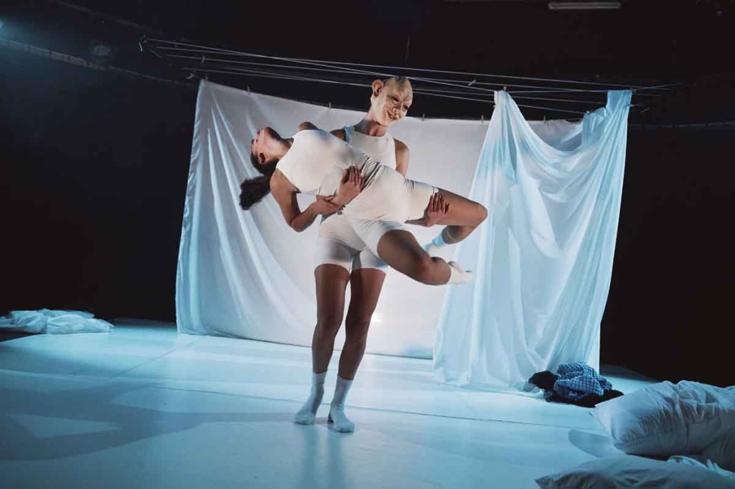 “We vertrekken vanuit een thema. Daarna maken we op de vloer performances over dat thema. De makers, schrijvers en choreografen zijn wij zelf. Vormgeving en regie worden altijd ingevlogen. Het is altijd een uitdaging met zware thema’s om het grappig en luchtig te maken zonder dat het onbelangrijk wordt. Maar dat is goed gelukt!”