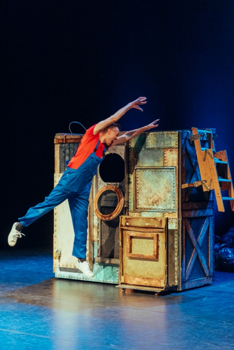 “Onze voorstelling worden steeds groter, maar we willen wel op zoveel mogelijk plekken kunnen spelen. Dat is een mooi spanningsveld. Ook dit keer is het weer gelukt. Het zorgt voor een extra laag creativiteit in het verzinnen en maken. En het leuke is, dat je dat ook meteen terugziet op de vloer. We hebben een gat van 34 meter diep, een raket die opstijgt, we vliegen in de ruimte. En het past allemaal in ons aanhangertje.”
