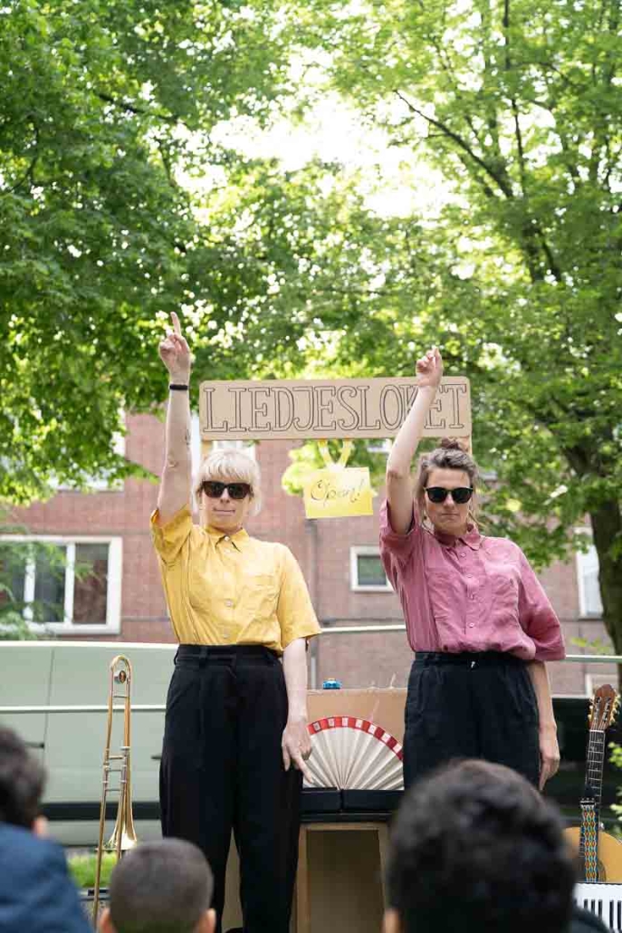Jong en oud kunnen bij het liedjesloket hun hart uitstorten, hun diepste zielenroerselen delen en emotionele ontboezemingen doen. * De dames van het liedjesloket zijn niet aansprakelijk voor de emotionele gevolgen van hun innemende liedkunst.