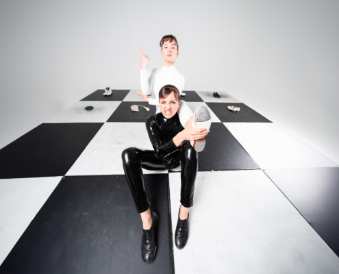 SCHAAKMAT! is een ritmische en futuristische tapdansvoorstelling. Op een gigantisch schaakbord komen de twee figuren – Zwart en Wit – tegenover elkaar te staan. Ze zijn elkaars tegenpolen maar lijken stiekem ook heel erg op elkaar. Want wie is de ander en hoe kan je van je verschillen juist een kracht maken?