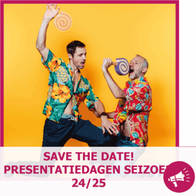 Seizoen 2026-2027 loopt van september 2026 tot augustus 2027. Wil je een jeugdtheater of jongerentheater voorstelling in plannen voor je theater, school, festival of feest voor september 2026? Kijk dan bij seizoen 2026-2027! Ben je benieuwd naar enkel nieuwe voorstellingen? Kijk dan bij ons nieuwe aanbod! Mocht je geïnteresseerd zijn in actief aanbod? Kijk dan bij de projecten op onze aparte projectensite! De voorstellingen die speciaal spelen tijdens het festival seizoen van mei 2026 tot september 2026 vind je bij op de festival pagina!