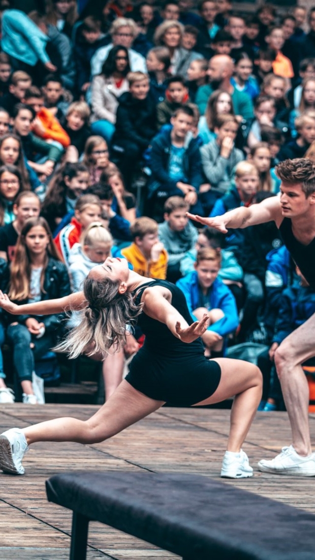 Onze voorstellingen zijn toegankelijk, herkenbaar en actueel. Veel energie, fysiek en theatraal. We dansen over sociaal-maatschappelijke thema’s die door verhalende bewegingen begrijpelijk zijn voor kinderen en jongeren. Iedere beweging draagt bij aan het verhaal en het publiek voelt waar het over gaat, omdat beweging voor iedereen herkenbaar is.Β Β